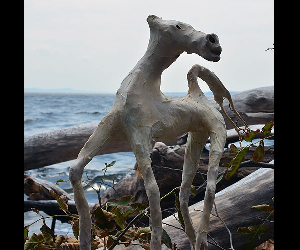 Parade was first installed as part of the 2013 Turning and Unraveling exhibition sponsorted by 350vt.org and held at the Goddard Gallery in Montpelier, Vt. Thirty sculptures were set on white pedestals dia-angling through the gallery in descending order at an angle.