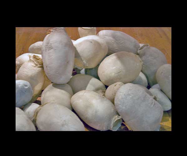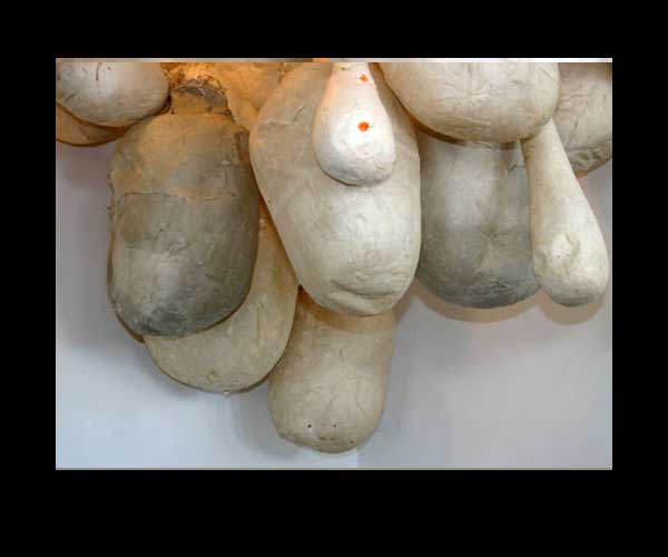 As I was exploring paper, I made hundreds of bulbous forms, skinning models with the abaca pulped in my studio, watching the skins shrink tightly over their restraints.