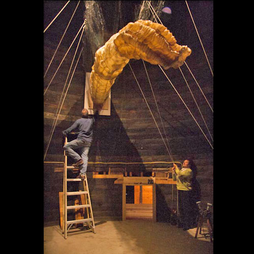 For the Shelburne Museum's National Paperwork in 3-D show in Shelburne, Vermont, we installed a 20 foot long sculpture in the silo of the round barn. The only view into the space was through a three-foot tall window, so the viewer peered into a mysterious tunnel.