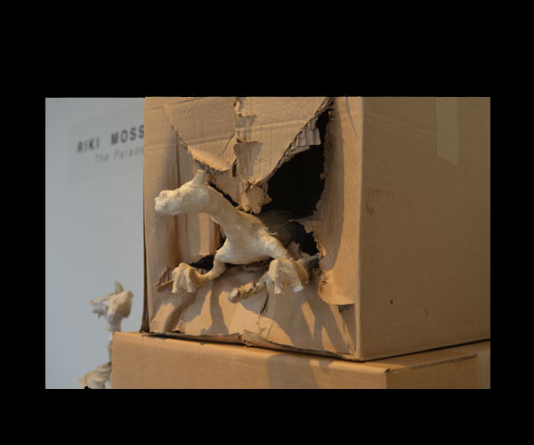 In September 2013, it was invited as the featured visual artwork at the Burlington Book Festival, exhibited at Arts Riot on Pine Street in Burlington. Here, the now forty sculptures were set on cardboard boxes, their own packing crates, which angled across the industrial space from the stage to the entry. The first small Red Guys (working title) joined the Parade, moving down from their hanging nest.