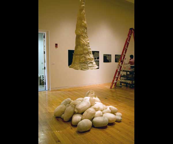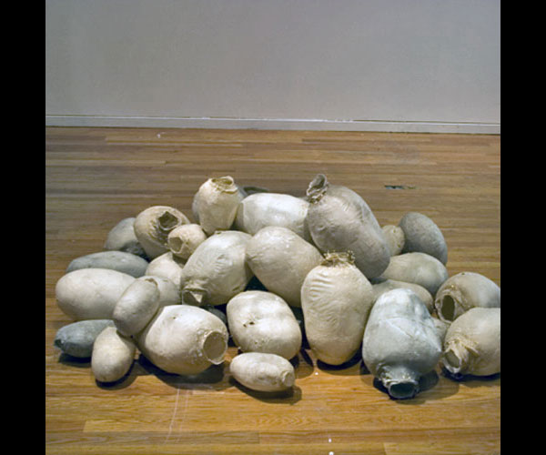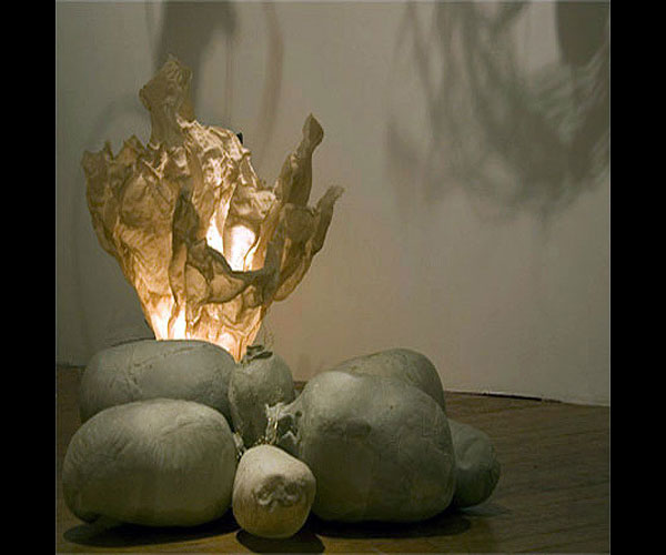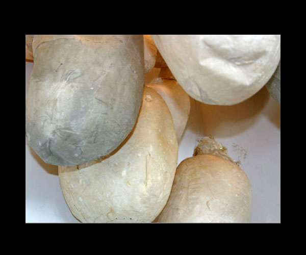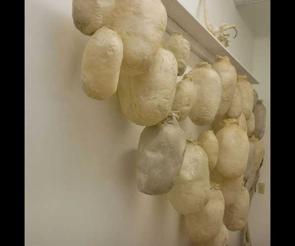As I was exploring paper, I made hundreds of bulbous forms, skinning models with the abaca pulped in my studio, watching the skins shrink tightly over their restraints.